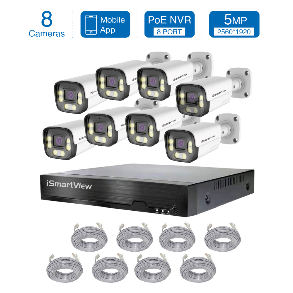 2K QHD POE NVR 8CH 8Camera Security Kit- Waterproof Bullet