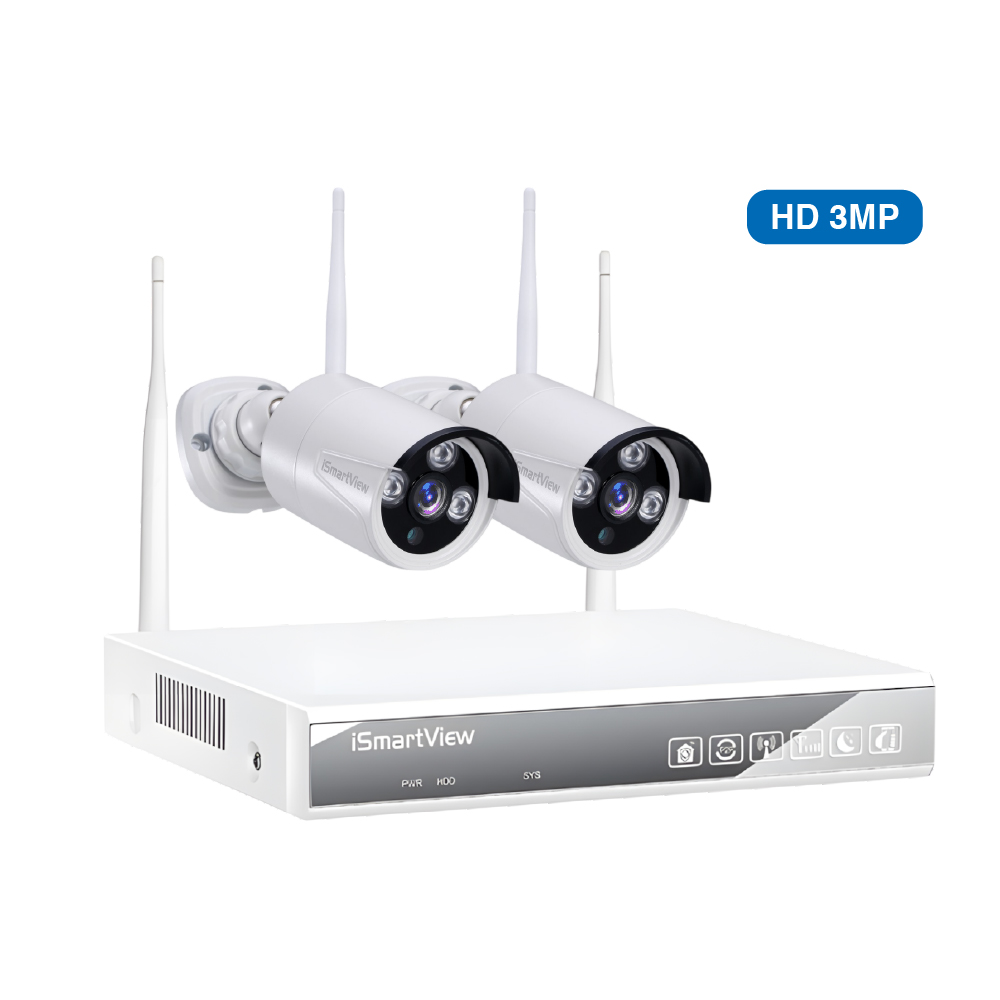 3MP Wireless CCTV 2 Camera NVR Security Kit No need video cable Easy Set-up