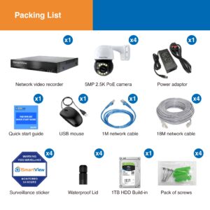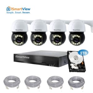 CCTV 4-CH PoE NVR 1TB HDD with 2K PoE 4 Camera PTZ Spot-light IP66 Waterproof Security CCTV kit IP Camera