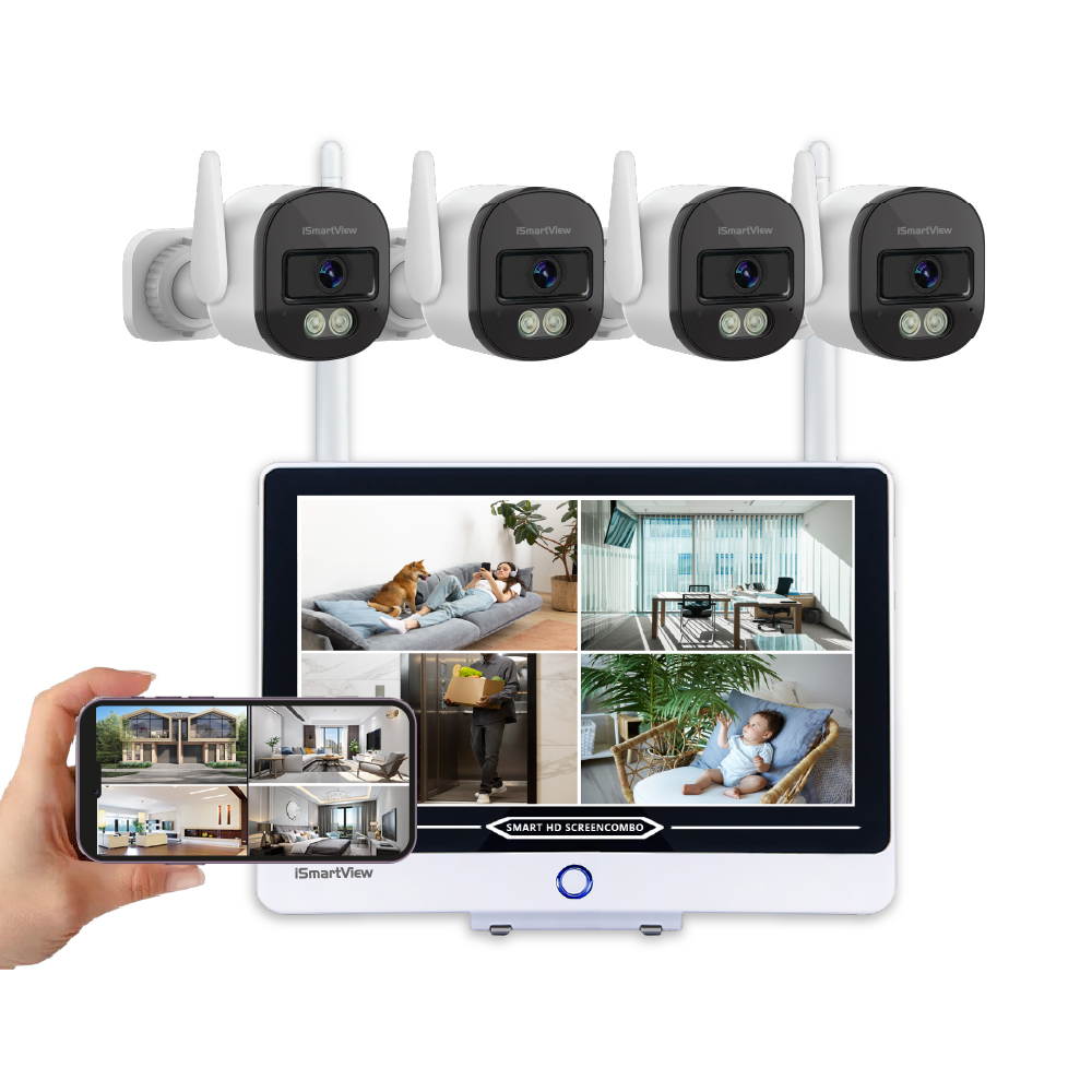 12吋顯示屏 無線閉路電視一體8路NVR 高清2K 4鏡頭套裝 免拉線 自動配對 插電即用