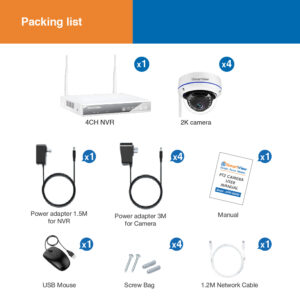 高清2K無線CCTV 8路NVR-1TB 防爆半球4鏡頭監控套裝
