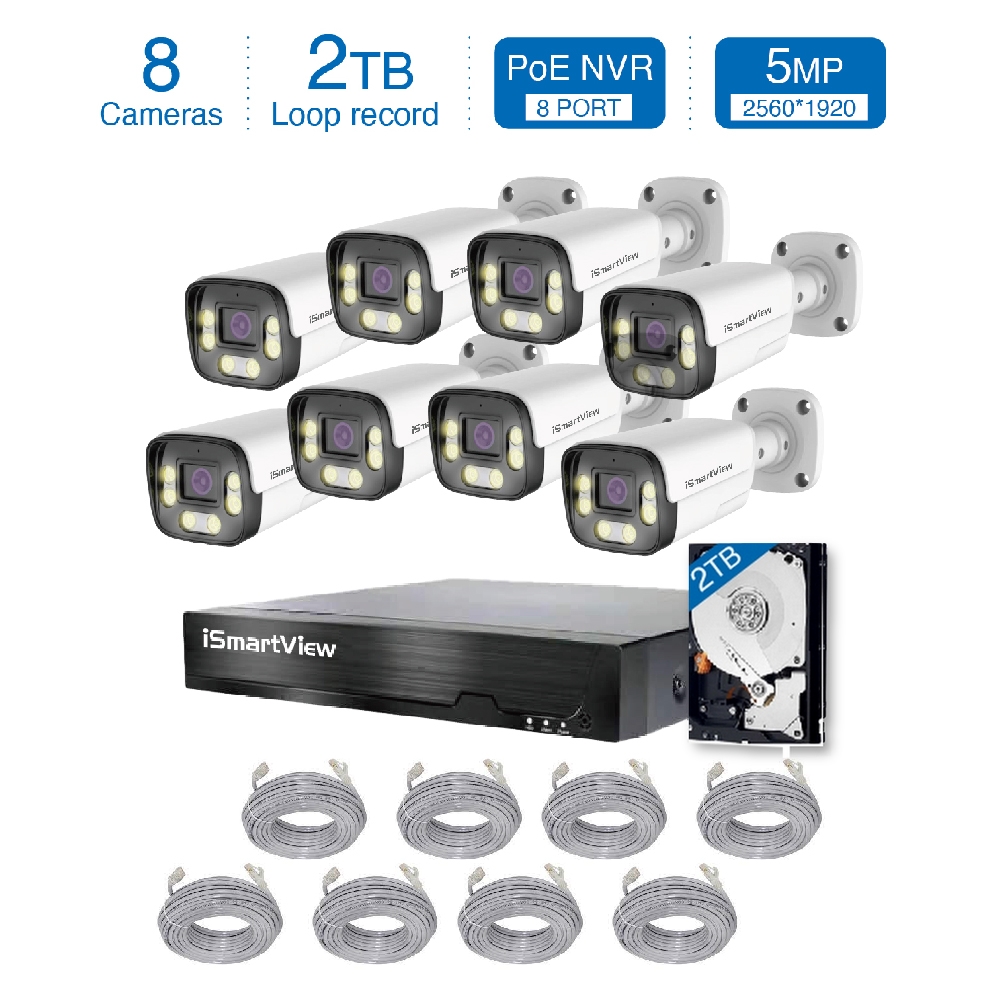 2K高清PoE 8路8鏡頭 2TB NVR CCTV監控套裝