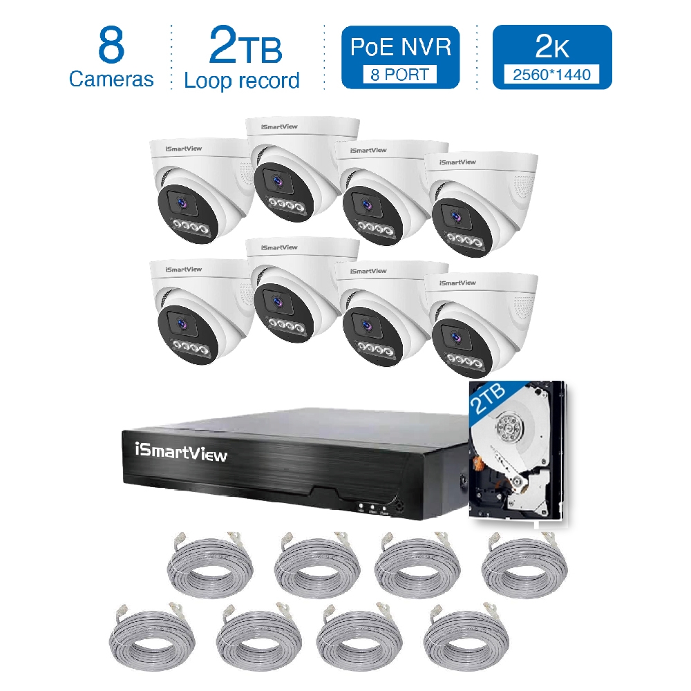 2K高清PoE 8路8鏡頭 2TB NVR CCTV監控套裝